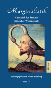 Darüber hinaus werden Beiträge aus dem gerade erschienenen aktuellen Almanach, dem dritten Band, präsentiert, der wieder ganz unterschiedliche Perspektiven auf Randphänomene bietet. Die Almanache setzen eine Tradition fort, die in der Zeit der Aufklärung begann und Nutzen und Vergnügen zu verbinden versucht.